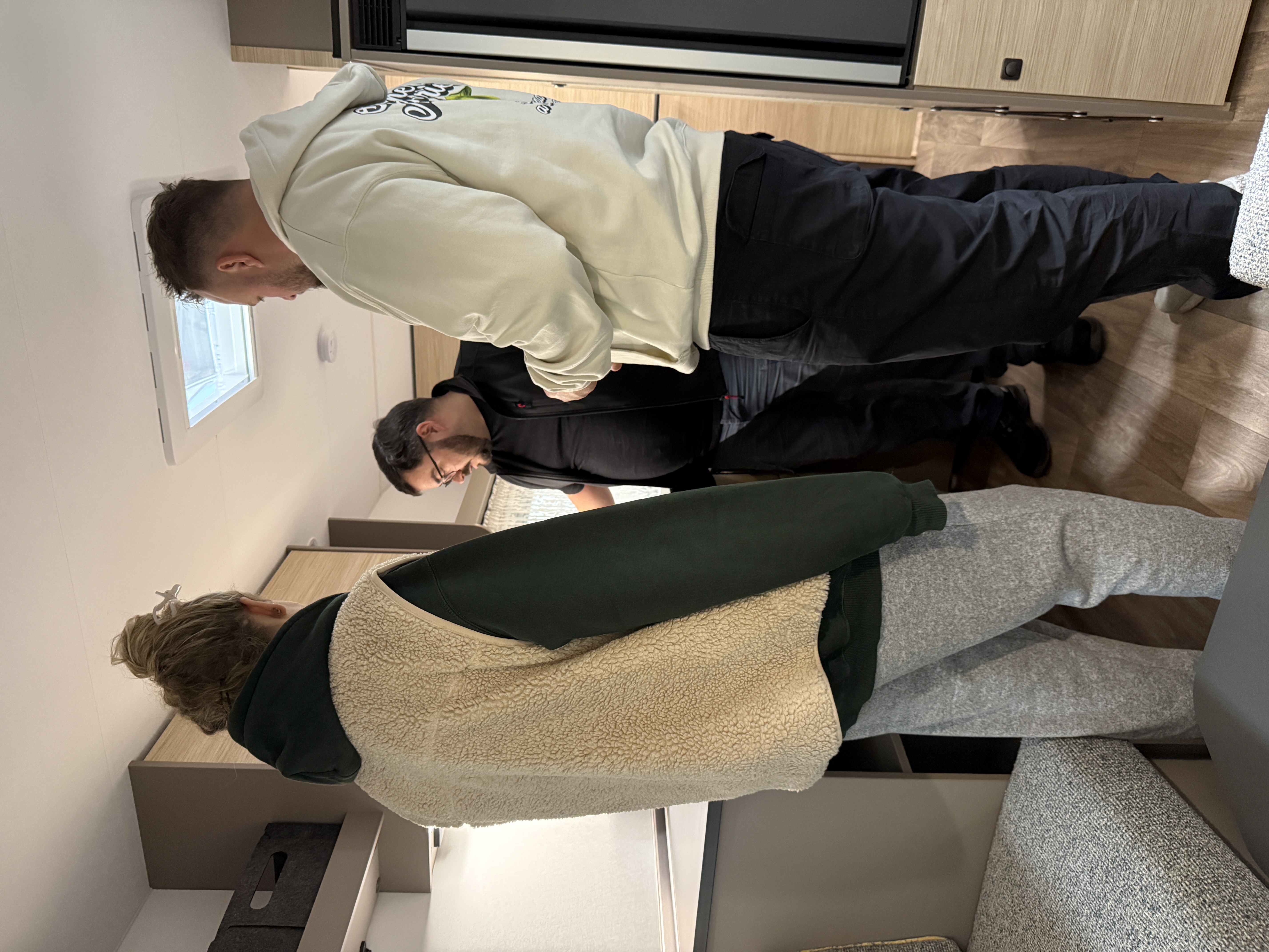 Ontspan en geniet in de gezellige zithoek van een prachtig uitzicht dankzij de drie ramen. Het dakraam biedt uitzicht op de hemel. Ledlampen zorgen voor het perfecte licht, rolgordijnen bieden de nodige privacy en de bank wordt in een handomdraai omgetoverd tot een derde bed.
